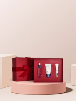 This gift set brings together three complementary formulas that work synergistically to deliver intense hydration and retain moisture exactly where the skin needs it most. The combination of the moisturising cream, concentrated booster, and eye gel creates a complete routine that improves skin volume, provides long-lasting comfort, and protects the eye area from dehydration. The results are quickly visible: the skin becomes smoother, more elastic, and noticeably better hydrated.