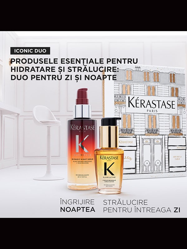 Sezonul sarbatorilor este momentul ideal pentru a oferi un cadou special sau pentru a transforma rutina zilnica de ingrijire intr-un moment de rasfat. Setul cadou in editie limitata Kerastase Iconics Holidays 2025 reuneste doua dintre cele mai emblematice produse ale brandului, create pentru a oferi hranire intensa, protectie de lunga durata si stralucire naturala tuturor tipurilor de par.