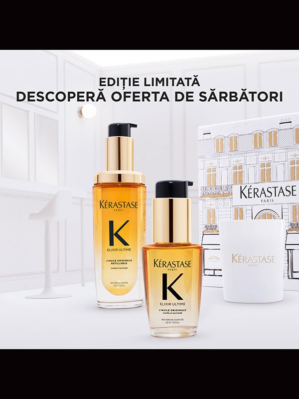 Sezonul sarbatorilor este momentul ideal pentru a oferi un cadou special sau pentru a-ti transforma rutina zilnica de ingrijire intr-un moment de rasfat. Setul cadou in editie limitata Kerastase Elixir Ultime Duo Holidays 2025 este un duo emblematic, creat pentru a reda parului stralucirea naturala, catifelarea si elasticitatea, oferind un finish perfect si un aspect vizibil mai sanatos.