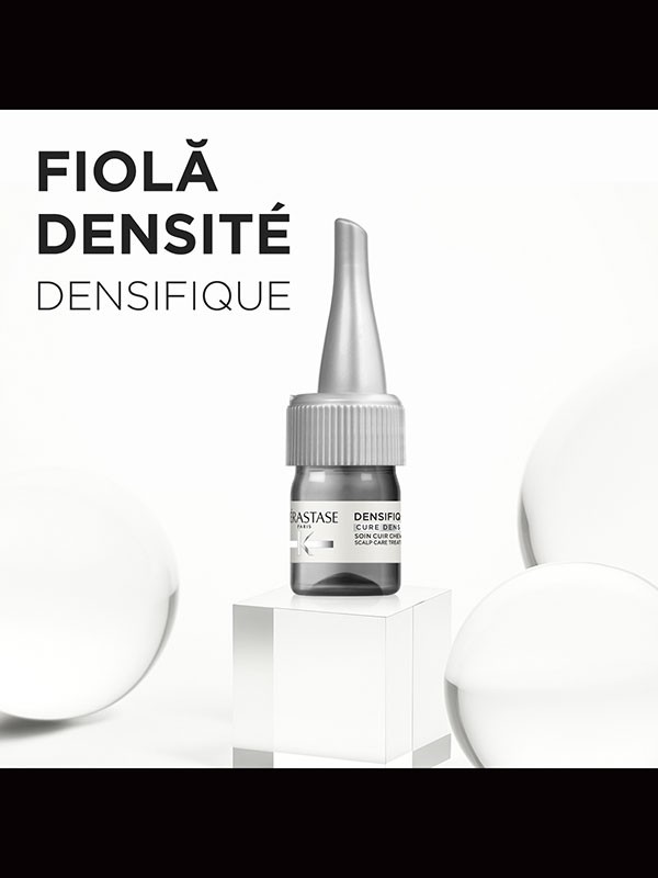 Descopera Kerastase Densifique Cure Densite, un tratament profesional intensiv conceput pentru a reactiva densitatea parului si a imbunatati textura si calitatea fibrei capilare. Formula sa avansata, imbogatita cu Stemoxidina si Complex Yang, creeaza un mediu optim pentru regenerarea parului, stimuleaza activitatea foliculilor si fortifica radacina. Cu o textura usoara si absorbtie rapida, aceste fiole actioneaza in profunzime pentru a reda parului vitalitate, grosime si rezistenta. In doar o luna de utilizare constanta, parul capata mai multa masa si corp, devenind vizibil mai plin si mai puternic. Dupa trei luni, studiile clinice arata o crestere de pana la 1000 de fire noi de par, de cinci ori mai puternice si de trei ori mai rezistente, cu o densitate mentinuta in timp.