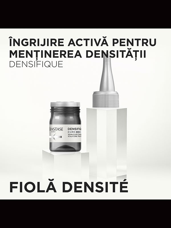 Kerastase Densifique Cure Densite este recomandat persoanelor cu par subtire, rar sau lipsit de volum, care isi doresc un program profesional de redensificare. Ideal pentru cei care vor un par mai gros, mai rezistent si vizibil mai plin, fara a compromite lejeritatea si confortul scalpului.