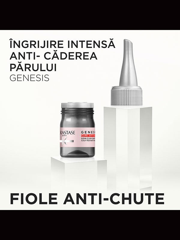 Kerastase Genesis Cure Anti-Chute Intense reduce semnificativ caderea parului cauzata de fragilitate si de factorii externi agresivi. Formula concentrata cu Aminexil si Ramnoza actioneaza in profunzime, fortifica radacina, redensifica fibra capilara si restabileste rezistenta naturala a parului. Prin utilizarea zilnica, timp de sase saptamani, parul devine mai puternic, mai dens si mai flexibil, iar caderea vizibila este redusa. Scalpului i se reda confortul, iar firele de par capata stralucire, volum si un aspect sanatos.