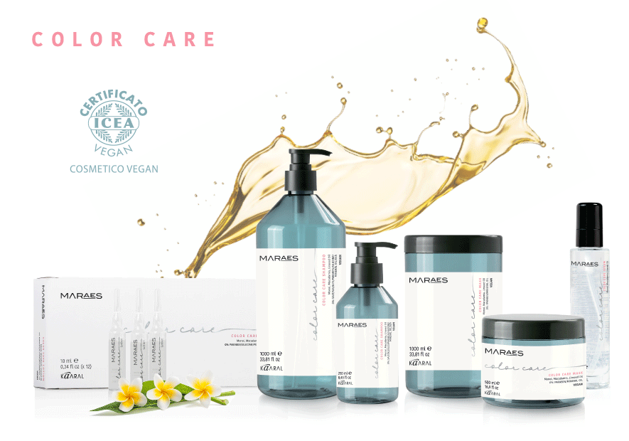 Gama Color Care include produse special alese pentru a-ti pastra culoarea vie si intensa: Color Care Shampoo, sampon vegan ce curata delicat parul, protejeaza pigmentii de culoare si il apara de radicalii liberi, alaturi de Color Care Mask, masca nutritiva care hidrateaza in profunzime si incetineste pierderea pigmentului. Gama este completata de Color Care Lotion, un concentrat cu uleiuri pretioase ce intareste firul de par si ii ofera rezistenta sporita, si de Color Care Serum, un ser iluminator ce sigileaza cuticula si intensifica stralucirea naturala a parului colorat.