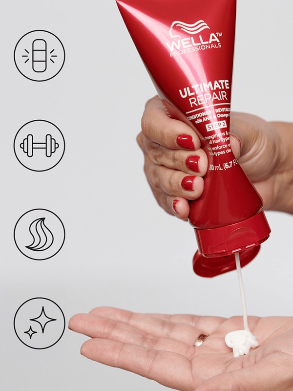 Balsamul hranitor Ultimate Repair de la Wella Professionals intareste si repara vizibil parul degradat din cauza decolorarii si a instrumentelor de coafat cu caldura, lasandu-l stralucitor si moale la atingere, cu fiecare utilizare.