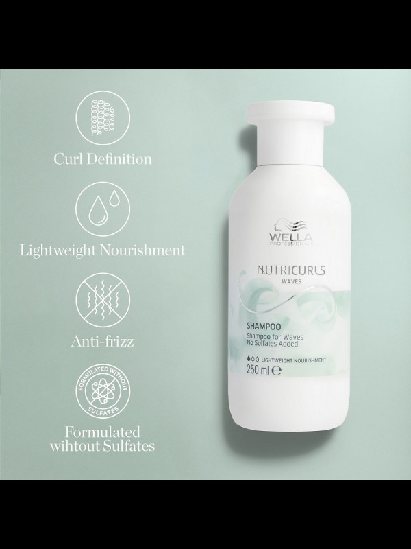 Wella Professional Nutricurls Waves este un sampon pentru par ondulat care indeparteaza usor impuritatile, hraneste si ajuta la definirea buclelor. Parul este hranit, hidratat si stralucitor.