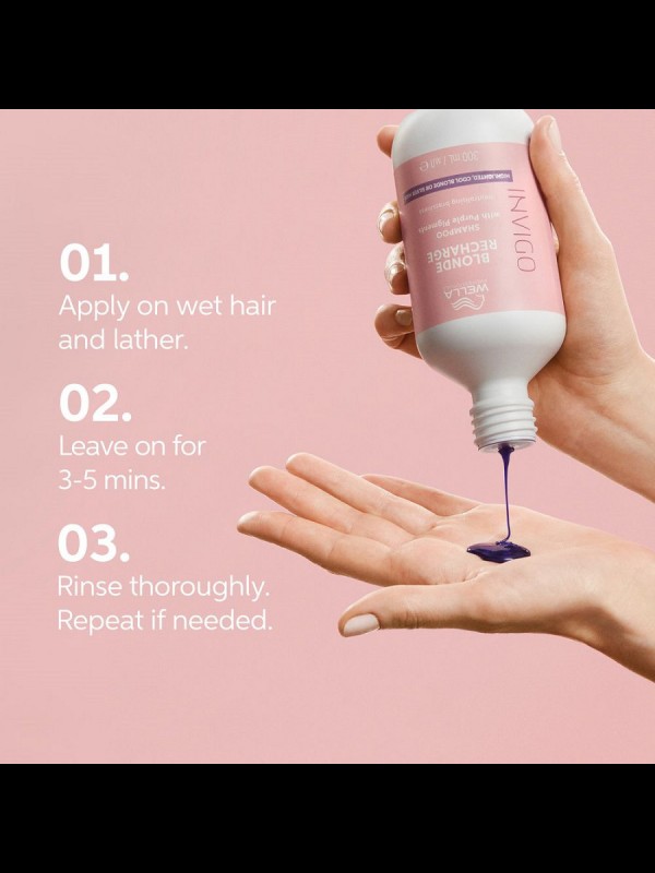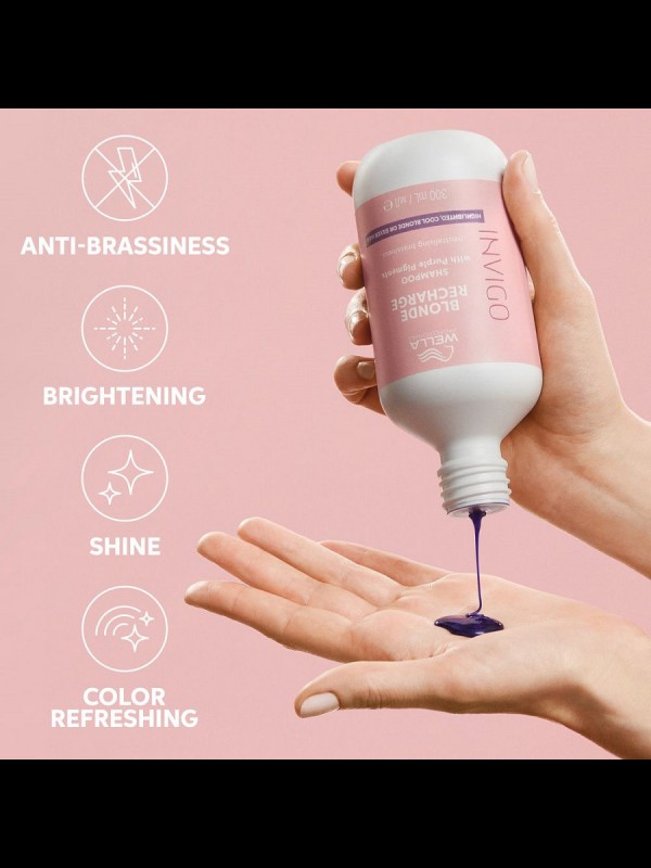Wella Professionals Invigo Blonde Recharge Color Refreshing Shampoo reimprospateaza stralucirea si vibratia culorii parului blond natural, vopsit sau decolorat. Formulat cu pigmenti de culoare, acest sampon violet ajuta la eliminarea tonurilor portocalii nedorite din parul blond. Dupa utilizare, parul ramane neted si moale la atingere.